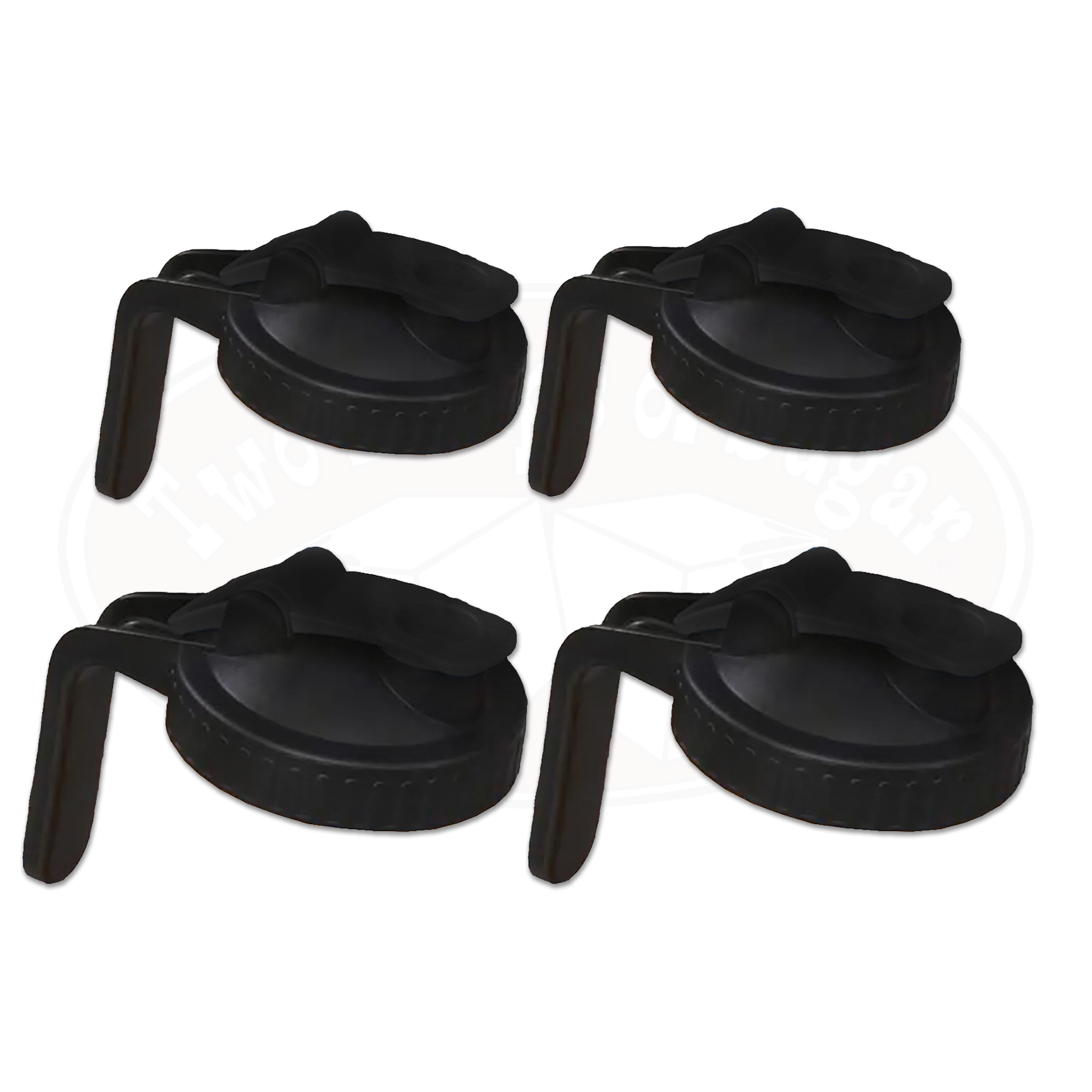 Two Lumps of Sugar Jar Lid with Handle and pour spout for Regular Mouth Mason jars. Black, 4pc Pack is universal to to fit all branded regular-mouth canning jars. BPA-free black plastic lids feature a convenient handle and pour spout for easy opening and closing. Can add a straw or drink from. Inner gasket provides a leak-proof/airtight seal. Perfect for storing dry goods, snacks, honey, liquids, dressings and beverages. Dishwasher-safe and reusable, this 4-pack combines functionality with durability, making it an practical accessory for canning jars and every kitchen.